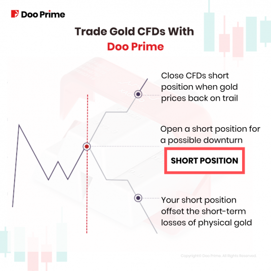 - Say that you owned some physical gold bars and you plan on holding them over the long term. You believe that gold positions may be in for a downturn, therefore, you want to offset the potential short-term losses of your gold bar by purchasing gold CFDs short position.