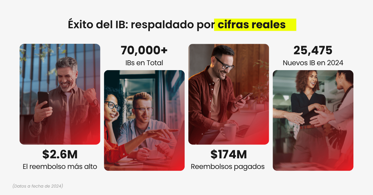 Con el tiempo, tanto el número de IB como el total de reembolsos pagados han crecido rápidamente, lo que refleja la solidez y sostenibilidad de nuestro modelo. Hoy en día, nuestra comunidad global de IB continúa expandiéndose, respaldada por un sistema diseñado para el crecimiento a largo plazo.