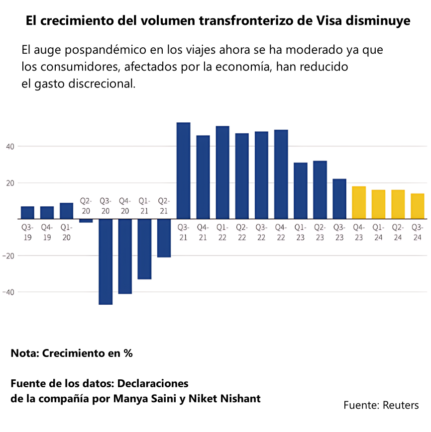 El crecimiento del volumen transfronterizo de Visa se reduce.