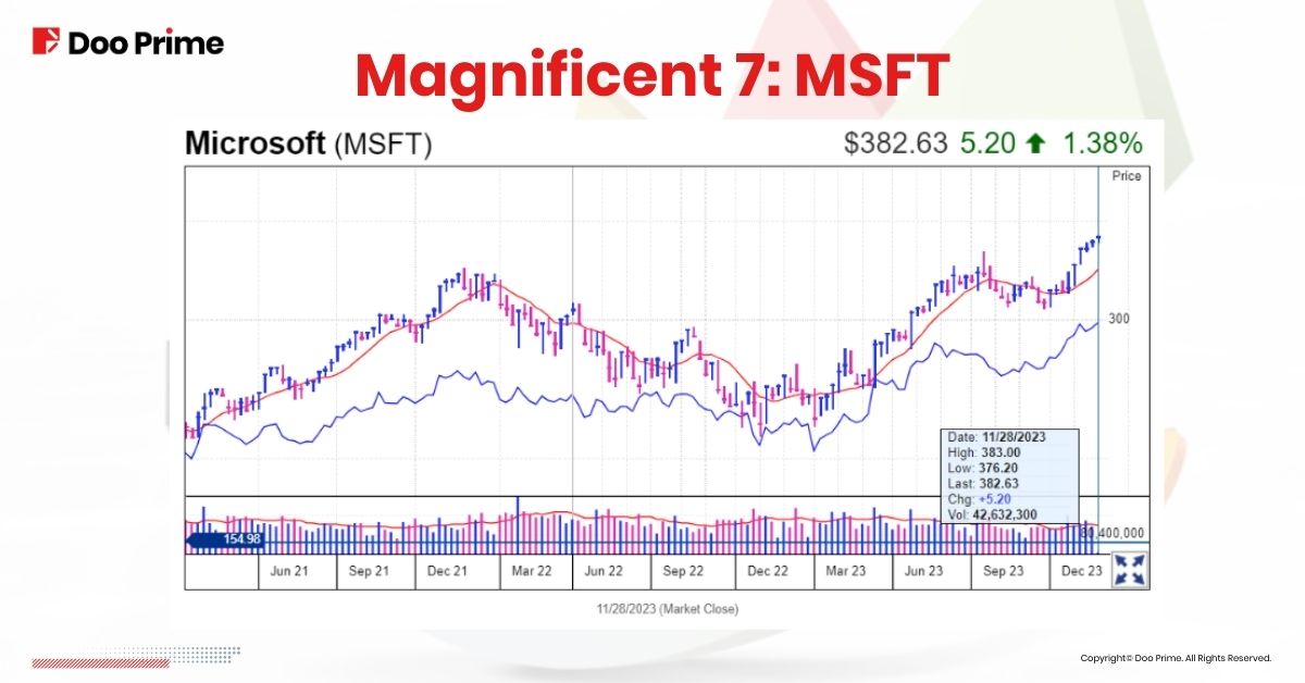 The seven wonders of the trading world are on the rise. The U.S. stock market is currently witnessing an ascent, driven by the emergence of what can be dubbed as the ‘Magnificent 7’ stocks. These powerhouse entities, namely Apple (AAPL), Alphabet (GOOGL, GOOG), Microsoft (MSFT), Amazon (AMZN), Meta (META), Nvidia (NVDA), and Tesla (TSLA), have become the focal points propelling the market to new heights.