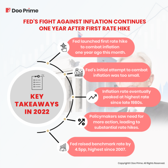 Despite a year of fighting against inflation, the current state of affairs is somewhat mediocre. The rate hikes have somewhat subdued the inflation surge that prompted the policy shift, but concerns remain about the timeliness of the Federal Reserve’s actions, and it is uncertain how long it will take the central bank to return to its 2% inflation target.
