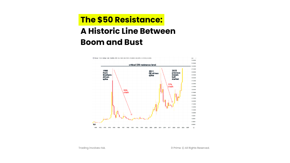 If the precious metal can decisively clear that $50 resistance, momentum could easily carry it toward the $75 psychological level