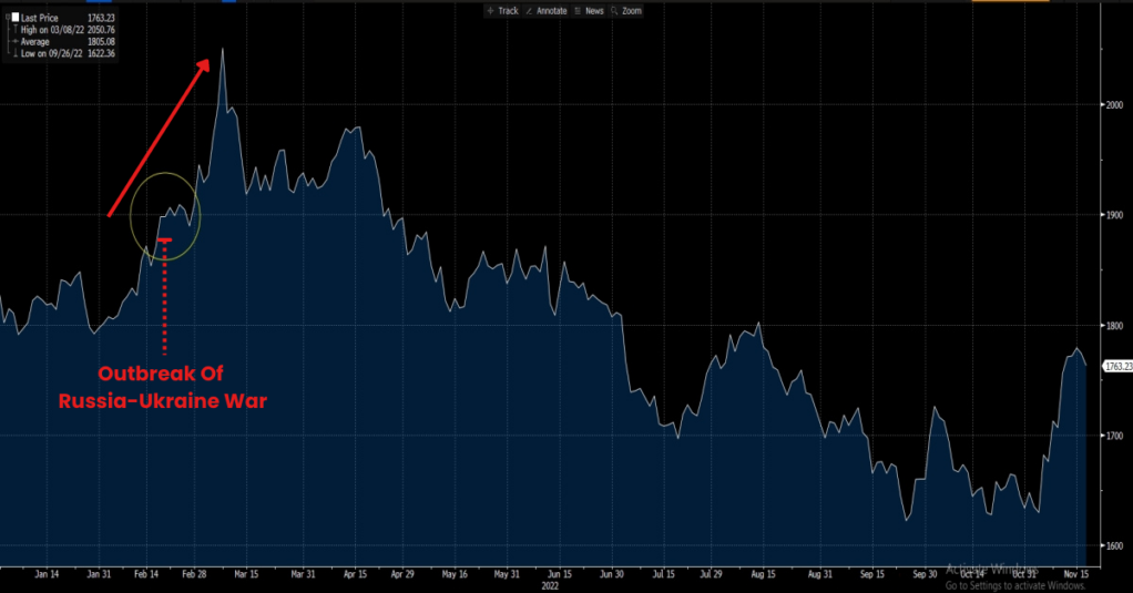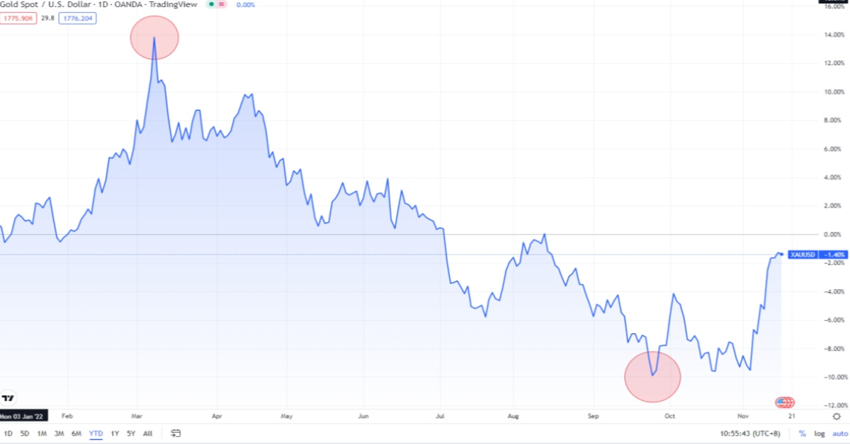 At the same time, the U.S. Fed continued to aggressively raise the interest rates, pulling up the value of the U.S. dollar. Eventually, the influence of the Russia-Ukraine war on the trend of gold prices faded gradually.