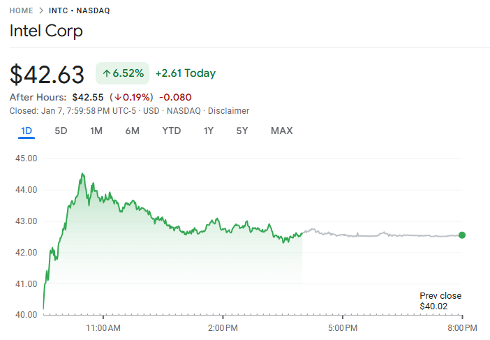 英特尔发布 Panther Lake 处理器,股价劲扬逾 6%