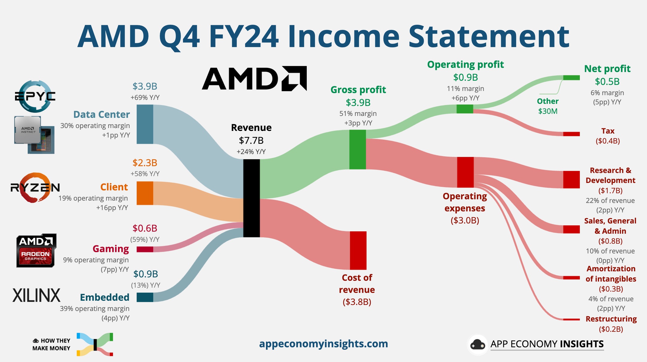 AMD 第四季度财报主要财务数据如下: