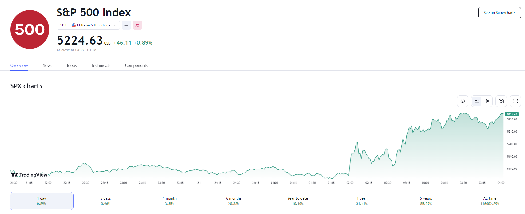 截至收盘,标普 500 指数收涨 46.11 点,涨幅 0.89%,报 5224.62 点。道指收涨 401.37 点,涨幅 1.03%,报 39512.13 点。纳指收涨 202.6 2点,涨幅 1.25%,报 16369.41 点。