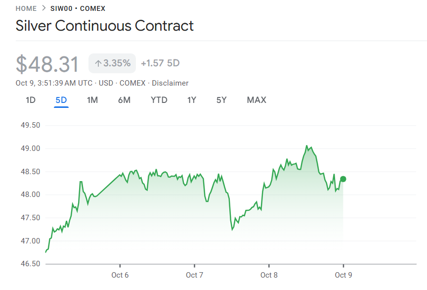 市场普遍预期美联储(Fed)将继续降息,而美国联邦政府仍处于停摆状态,叠加全球经济前景不明朗,投资者避险情绪显著升温,进一步推动黄金与白银等贵金属需求及价格同步走高。