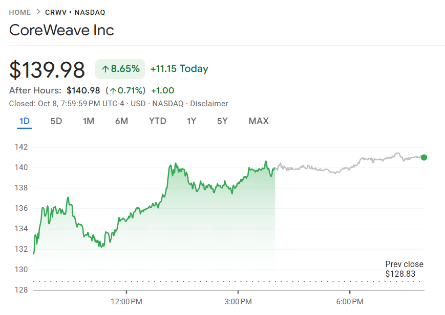10 月 8 日至 9 日,CoreWeave(CRWV) 周三股价大升 8.65%,公司宣布推出一款面向开发者的全新 AI 代理开发工具,旨在提升训练效率与计算资源利用率。