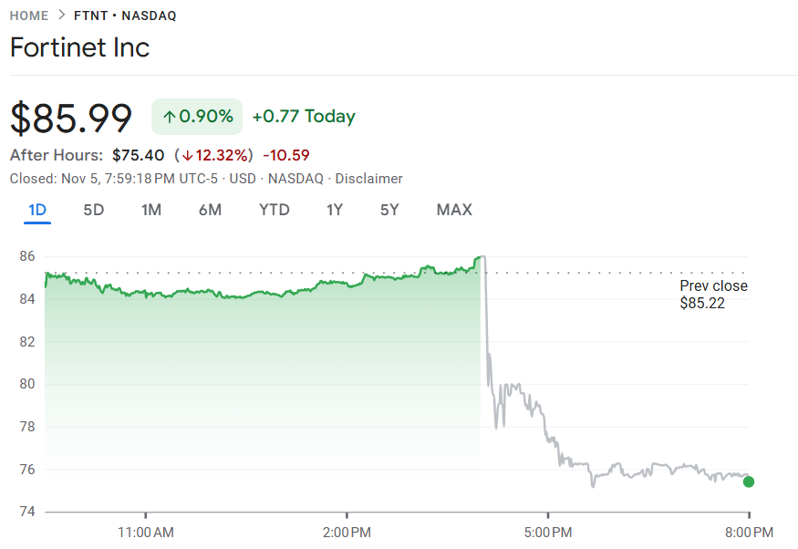 分析指出,Fortinet 在人工智能(AI)与安全接入服务边缘(SASE)等新兴领域的布局相对有限,使其在激烈竞争中逐渐失去成长优势。财报公布后,市场信心受挫,公司股价在盘后交易中暴跌 11.5%。