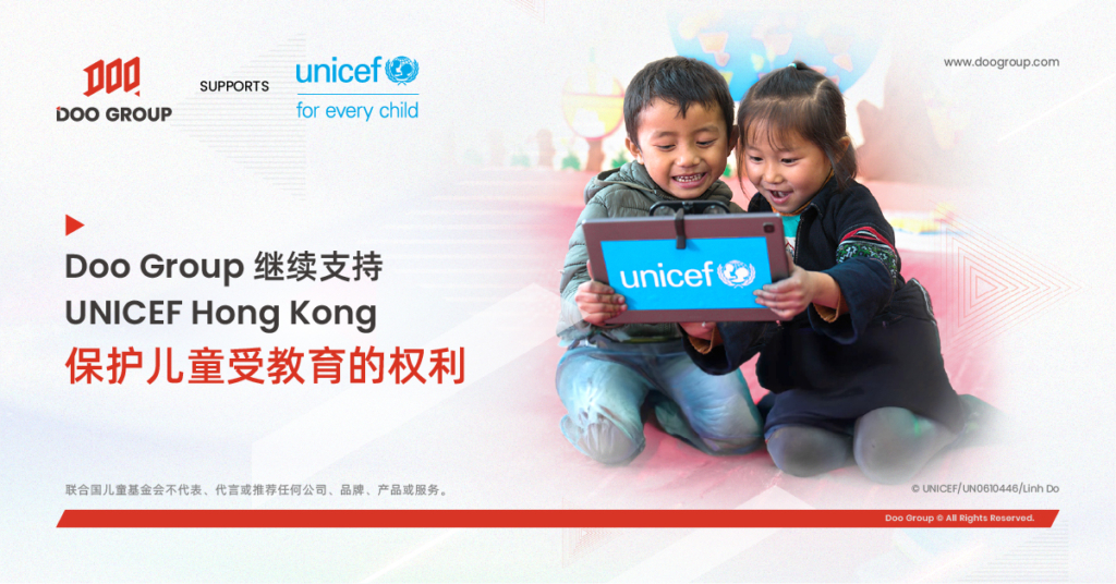 Doo Group 与联合国儿童基金香港委员会成功延续合作伙伴关系,标志着我们在儿童赋权领域的达到全新里程,未来将为儿童福祉做出更多贡献。