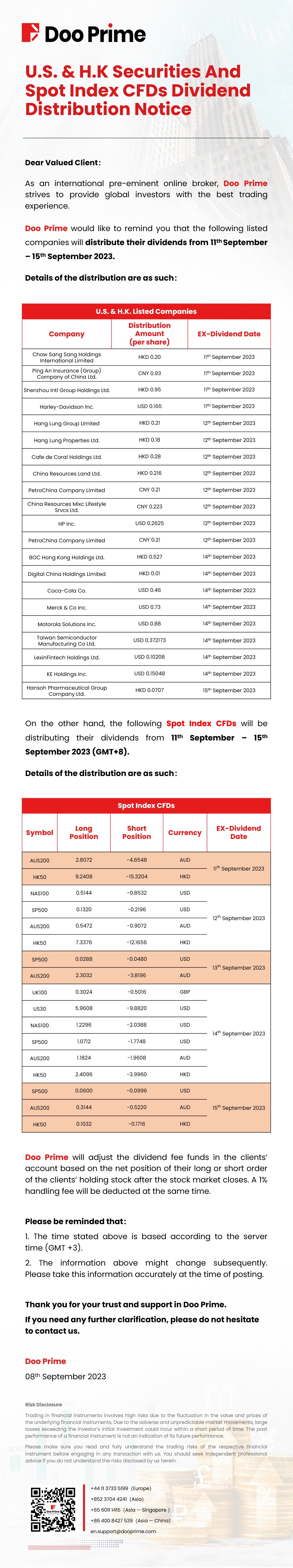 2023-09-08 | Dividend Distribution Notice , Securities , Spot Index