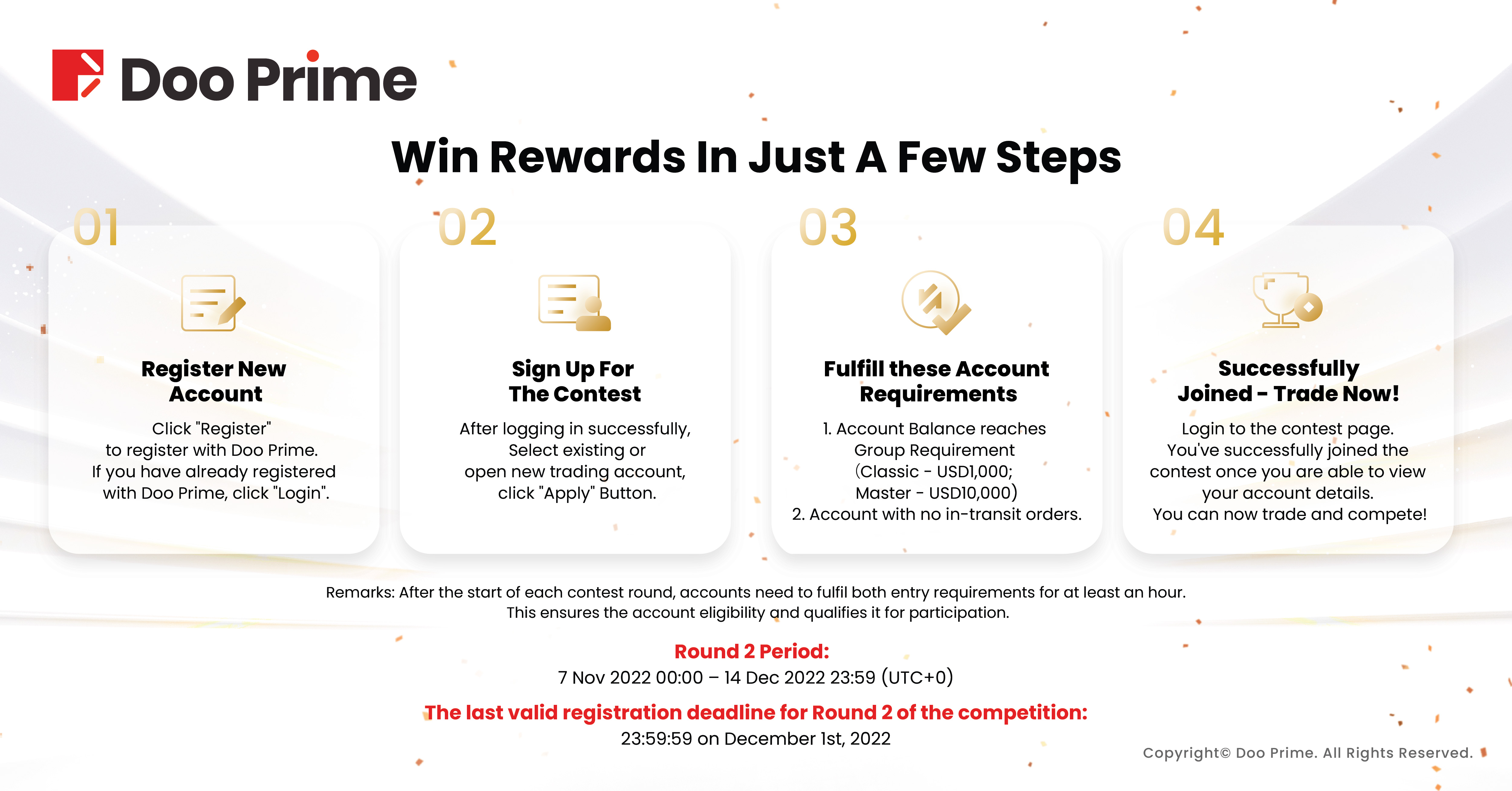 The first round of the S3 #DooTrader Charity Cup Global Trading Competition has concluded successfully. To this end, the second round of the competition will officially kickstart on 7th November 2022 and everyone is encouraged to take part regardless if you were a previously performing contestant or a new-round competitor. With a generous prize pool of USD159,000, we look forward to seeing all participants compete at the top of their game.