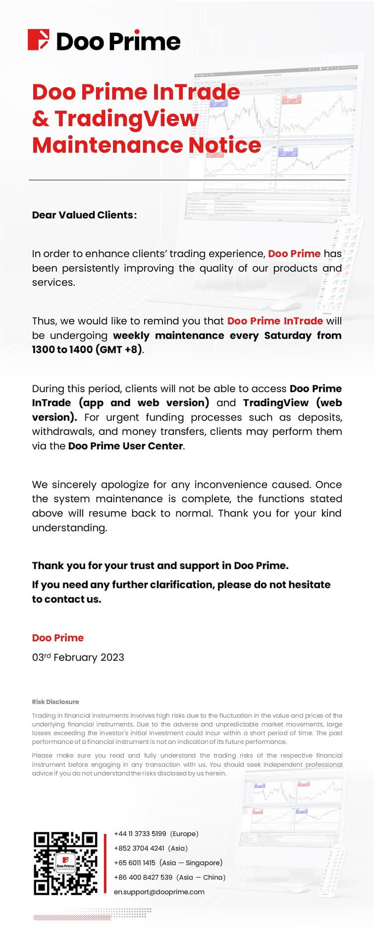 Doo Prime InTrade & TradingView Maintenance Notice