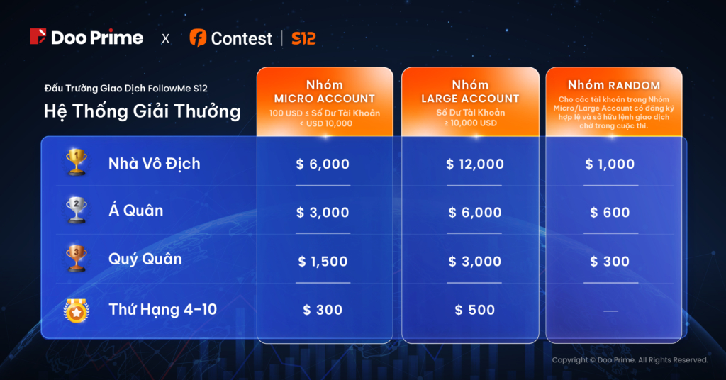 Với sự hỗ trợ từ phía Doo Prime, Đấu Trường Giao Dịch FOLLOWME S12 sẽ mang đến một môi trường phát triển sâu rộng hơn nhằm thể hiện sự đổi mới tài chính cùng các tiến bộ về công nghệ. Thông qua đó, chúng tôi mong muốn sẽ sớm chứng kiến những màn trình diễn đỉnh cao đến từ các “nghệ sỹ” đích thực trong cộng đồng giao dịch trên thế giới.
