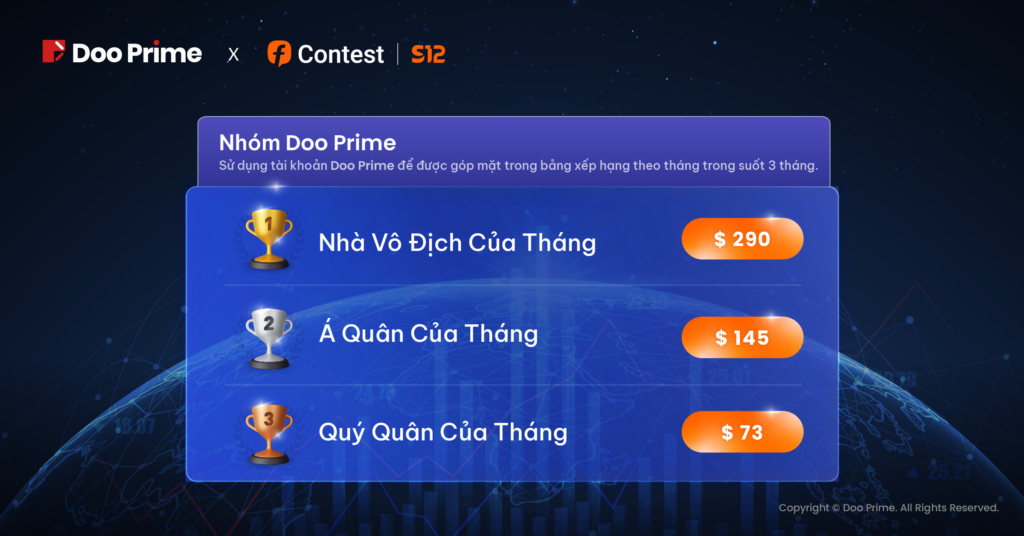 Với danh tiếng được gây dựng từ lâu trong ngành, Doo Prime đã tiếp tục trở lại cuộc thi với tư cách Nhà Tài Trợ Kim Cương. Sự hiện diện này được hứa hẹn sẽ thu hút sự quan tâm và chú ý mạnh mẽ từ phía công chúng. Ngay bây giờ, cuộc thi không chỉ còn là đấu trường vì giải thưởng và danh dự, mà còn là môi trường giao dịch đỉnh cao để các nhà giao dịch được dịp phát triển và đột phá. Vẫn với phương châm “Khách Hàng Là Trên Hết”, Doo Prime luôn ưu tiên lợi ích của khách hàng lên trên hết thông qua nỗ lực cung cấp cho các nhà đầu tư một môi trường giao dịch an toàn và bảo đảm, tuân thủ nghiêm ngặt các quy định của các tổ chức có thẩm quyền nhằm bảo vệ tuyệt đối quỹ của khách hàng.