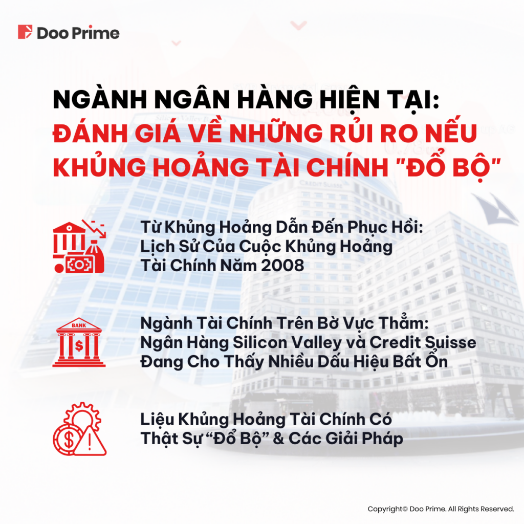 Có thể nói, trong thời gian gần đây, ngành ngân hàng đã chứng kiến nhiều sự thay đổi mạnh mẽ, khi các ngân hàng lớn liên tục đối mặt với khủng hoảng thanh khoản, dẫn đến sự suy giảm về giá cổ phiếu. Điều này cũng gợi nhớ đến cuộc khủng hoảng tài chính xảy ra trên phạm vi toàn thế giới vào 15 năm trước. Liệu vụ việc của SVB và Credit Suisse vừa rồi có “châm ngòi” cho một đợt khủng hoảng tài chính mới như Bear Stearns và Lehman trong năm 2008?