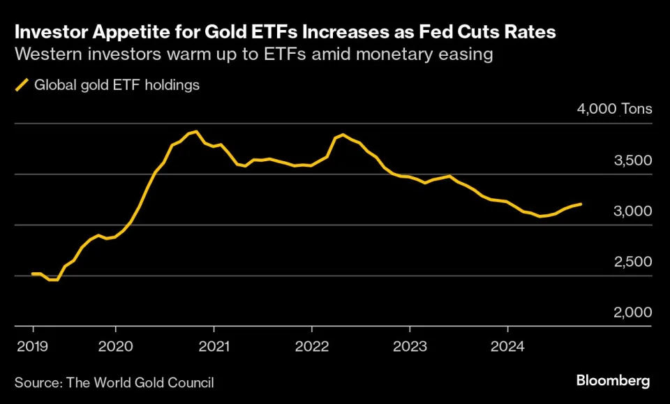 Theo dữ liệu từ Hội đồng Vàng Thế giới, lượng vàng dự trữ trong các quỹ đã ghi nhận 5 tháng tăng liên tiếp, đạt 3,200 tấn vào tháng 9. Mặc dù các nhà đầu tư vẫn là người bán ròng khoảng 25 tấn vàng ETF trong năm nay, nhưng dòng tiền mạnh mẽ trong vài tháng qua đã đưa giá trị ETF lên mức dương 389 triệu USD. Giá vàng đã vượt qua 2,600 USD mỗi ounce, đạt mức cao nhất mọi thời đại, nhờ vào sự chuyển hướng của Cục Dự trữ Liên bang về việc cắt giảm lãi suất.